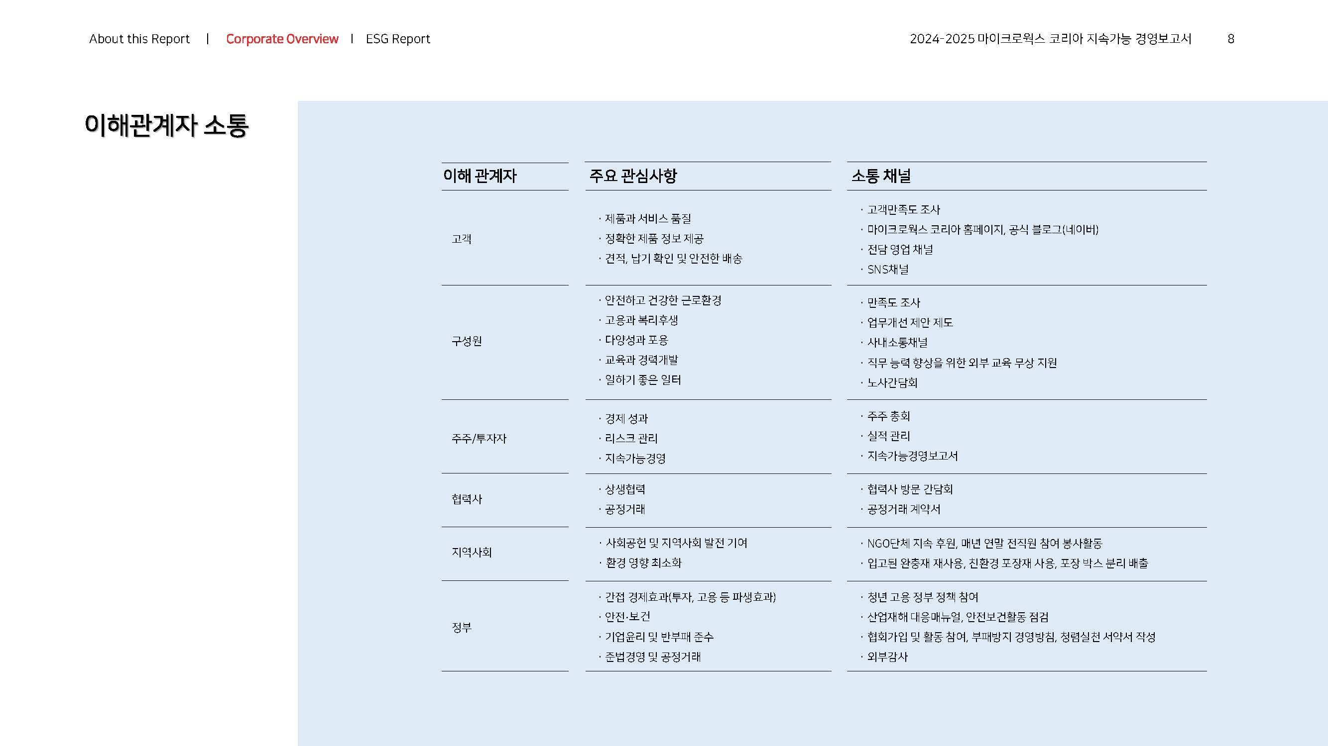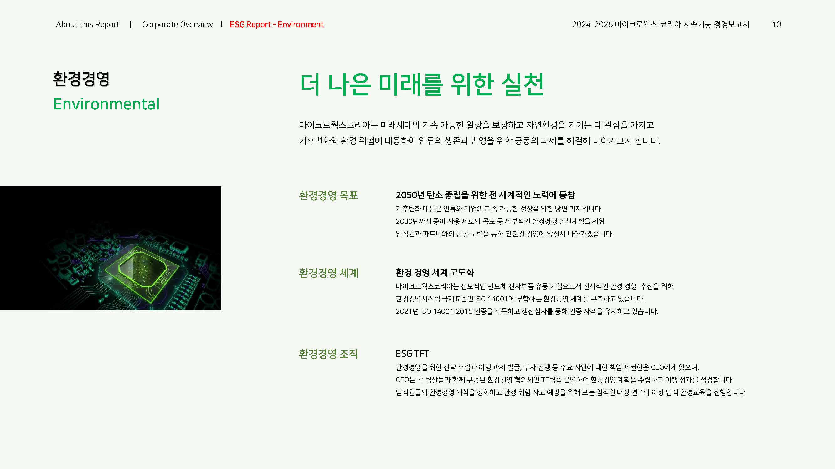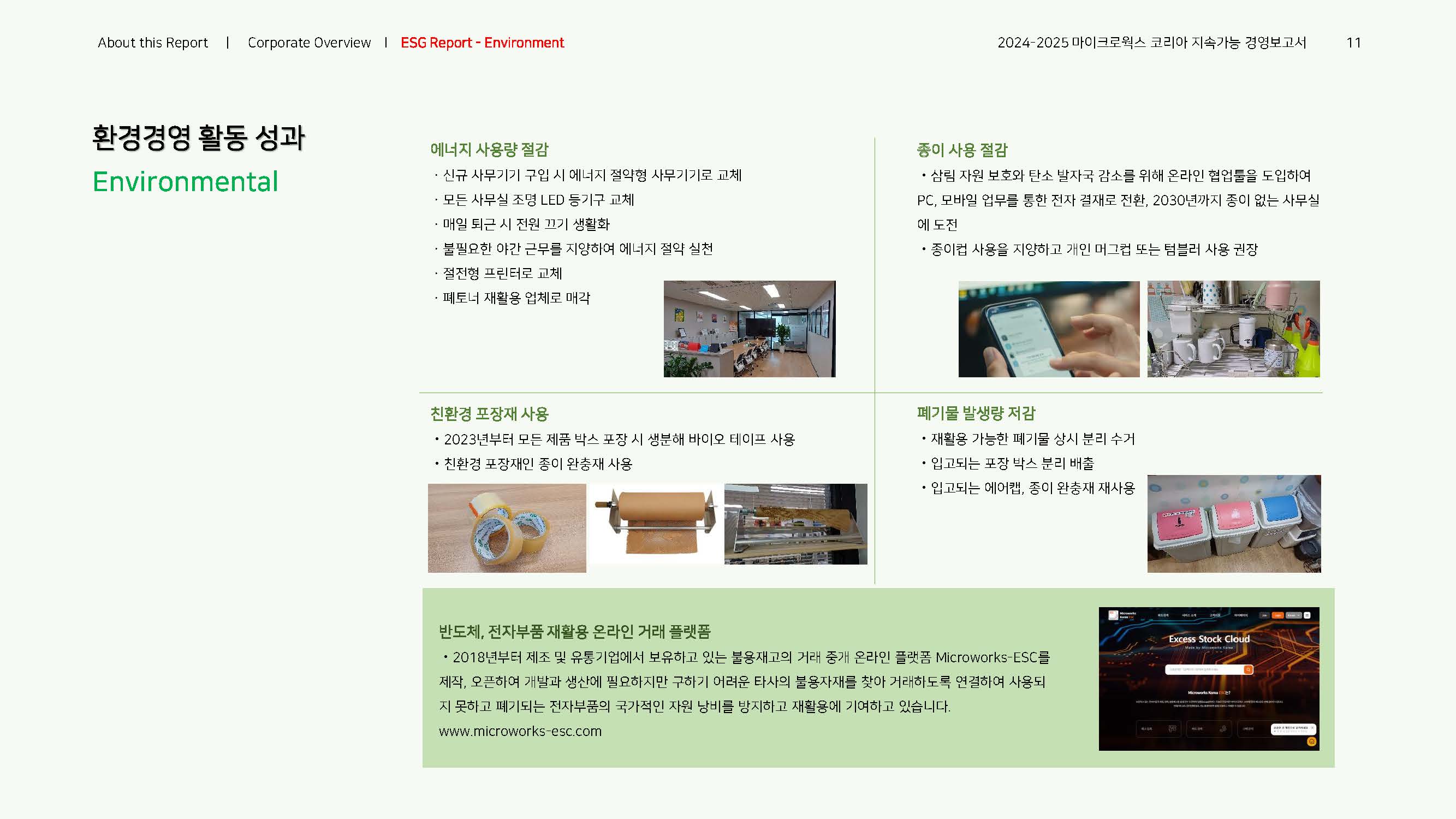 이에 마이크로웍스 코리아는 동종업계 최초로 ESG 정보 공시, 지속가능경영보고서를 발간하여